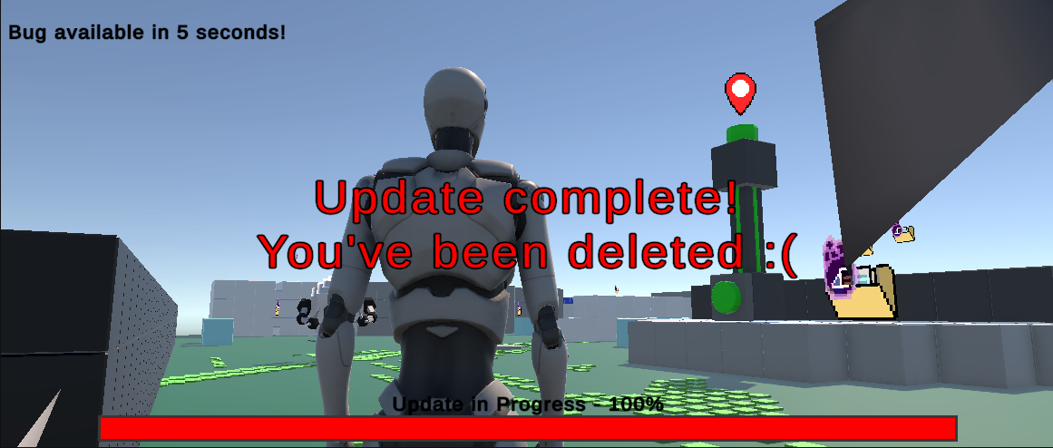 Base Unity Guy is about to be deleted in the update! Oh no! Help him stop the update at the different points and collect corrupted folders so he can survive, but watch out for the update bots!